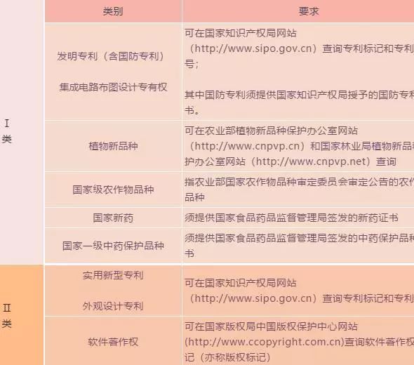 高新技術(shù)企業(yè)認(rèn)定中,對(duì)企業(yè)知識(shí)產(chǎn)權(quán)情況采用分類評(píng)價(jià)方式,具體分類情況如下表: